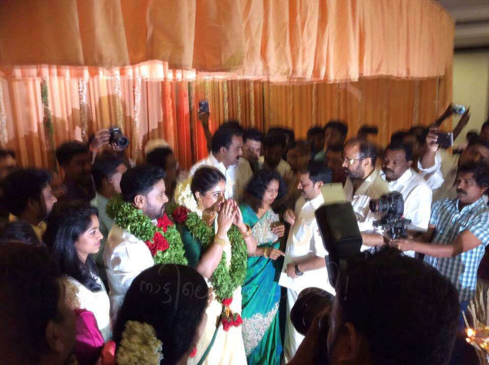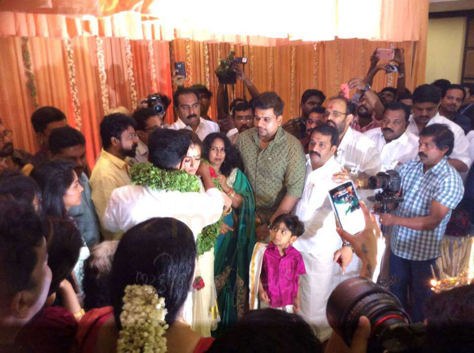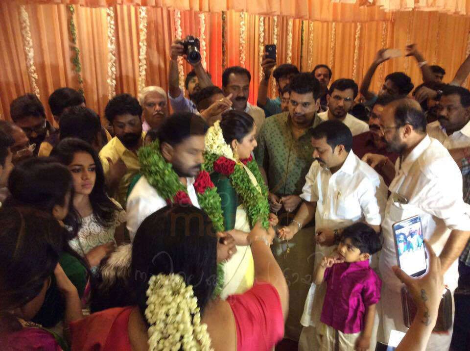അപ്രതീക്ഷിതമായായിരുന്നു ദിലീപ് കാവ്യ മാധവന് വിവാഹ വാര്ത്ത ഇന്ന രാവിലെ എത്തിത്. വിവാഹമാണെന്ന വിവരം വ്യക്തമാക്കിയില്ലെങ്കിലും മാധ്യമങ്ങളെയും സുഹൃത്തുക്കളെയും ക്ഷണിച്ചിരുന്നു. അടുത്ത സുഹൃത്തുക്കളും ചലച്ചിത്രമേഖലയില് നിന്നുള്ളവരുമടക്കം നിരവധി പ്രമുഖര് ദിലീപിനും കാവ്യക്കും ആശംസകള് നേരാന് എത്തി. മമ്മൂട്ടി, ജയറാം, ലാല്, മീരാ ജാസ്മിന് തുടങ്ങിയവരും സംവിധായകനായ കമല്, ജോഷി രഞ്ജിത്ത്, നാദിര്ഷാ, നിര്മ്മാതാവ് രഞ്ജിത്ത് രജപുത്ര, നടിമാരായ മേനക, ജോമോള്,ചിപ്പി തുടങ്ങിയവര് വിവാഹച്ചടങ്ങില് പങ്കെടുക്കാനെത്തിയിരുന്നു.