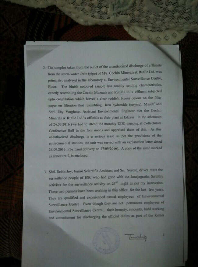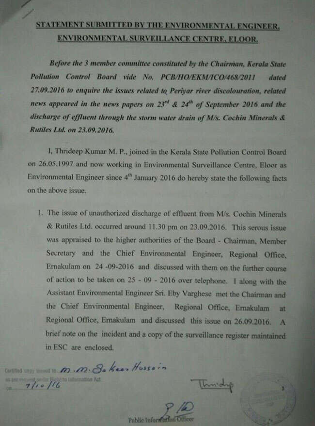 പെരിയാര് മലിനീകരണം; കരിമണല് കര്ത്തായ്ക്കു വേണ്ടി വ്യാജവാര്ത്ത ചമച്ച് മംഗളവും കൗമുദിയും; മലിനീകരണമില്ലെന്ന് എഞ്ചിനീയര് പറഞ്ഞതായി വാര്ത്ത; വാര്ത്ത നിഷേധിച്ച് എഞ്ചിനീയര്