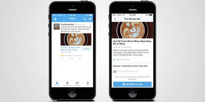 റിയൽ ലൈഫ് കോമേഴ്സിലേക്ക് കടക്കാൻ ട്വിറ്റർ ഒരുങ്ങുന്നതായി റിപ്പോർട്ട്. ഓഫേഴ്സ് എന്ന പുതിയ ടൂളിലൂടെയാണ് ഇത് സാധ്യമാകുന്നത്. ഇതിലൂടെ റീട്ടെയിലർക്ക് മണി ഓഫ് കൂപ്പണുകൾ ട്വീറ്റ് ചെയ്യാനാകും. അത് പിന്നീട് സ്റ്റോറിൽ നിന്നും വീണ്ടെടുക്കാനുമാകും. അഡ്വർടൈസർമാർക്ക് പ്രമോഷനുകളും ഡിസ്കൗണ്ടുകളും യൂസർമാരുടെ ട്വിറ്റർ ഫീഡുകളിൽ പോസ്റ്റ് ചെയ്യാനും ഇതിലൂടെ സാധിക്കുന്നു. ഷോർട്ട് മെസേജിംഗ് സർവീസിലൂടെ തങ്ങളുടെ സ്ഥാപനത്തെ പിന്തുടരുന്ന യൂസർമാരുടെയും പിന്തുടരാത്ത യൂസർമാരുടെയും ഫീഡുകളിൽ ഇത്തരത്തിൽ പോസ്റ്റ് ചെയ്യാൻ ഇതിലൂടെ സ്ഥാപനങ്ങൾക്ക് സാധിക്കും. തുടർന്ന് യൂസർമാർക്ക് തങ്ങളുടെ കാർഡിലെ വിവരങ്ങൾ എന്റർ ചെയ്യാം. അവർ എപ്പോഴാണോ അത് സ്റ്റോറിൽ ഉപയോഗിക്കുന്നത് അപ്പോൾ ഓഫർ അപ്ലൈ ചെയ്യപ്പെടുകയും ചെയ്യും.