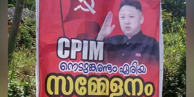 സിപിഎം ഏരിയ സമ്മേളനത്തിനായി സ്ഥാപിച്ച ഫ്‌ളക്‌സ് ബോര്‍ഡില്‍ ഉത്തര കൊറിയന്‍ ഭരണാധികാരിയും ഏകാധിപതിയുമായ കിം ജോങ് ഉന്നിന്റെ ചിത്രം. ഇടുംക്കിയിലെ നെടുങ്കണ്ടം ഏരിയ സമ്മേളനത്തിന് സ്ഥാപിച്ച ബോര്‍ഡിലാണ് കിമ്മിന്റെ ചിത്രം പ്രത്യക്ഷപ്പെട്ടത്. ഇതിന്റെ ചിത്രം സോഷ്യല്‍ മീഡിയയില്‍ പ്രചരിച്ചതോടെ സിപിഎമ്മിന് പരിഹാസവുമായി വി.ടി.ബല്‍റാം എംഎല്‍എ രംഗത്തെത്തി.
