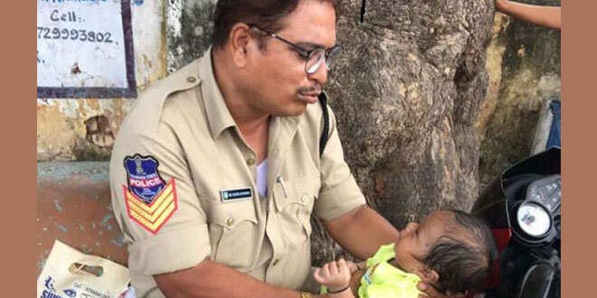 അമ്മ പരീക്ഷാ ഹാളില്; നാല് മാസം പ്രായമായ കുഞ്ഞിന് കൂട്ടിരുന്ന് പോലീസുകാരന്; കയ്യടിച്ച് സോഷ്യല് മീഡിയ