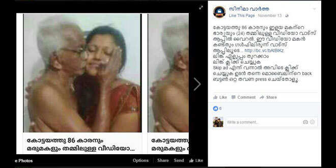 മുത്തശ്ശന്റെ ചുംബനത്തെ ലൈംഗിക വൈകൃതമാക്കി ചിത്രീകരിച്ച ഫേസ്ബുക്ക് പേജിനെതിരേ യുവതിയുടെ പരാതി