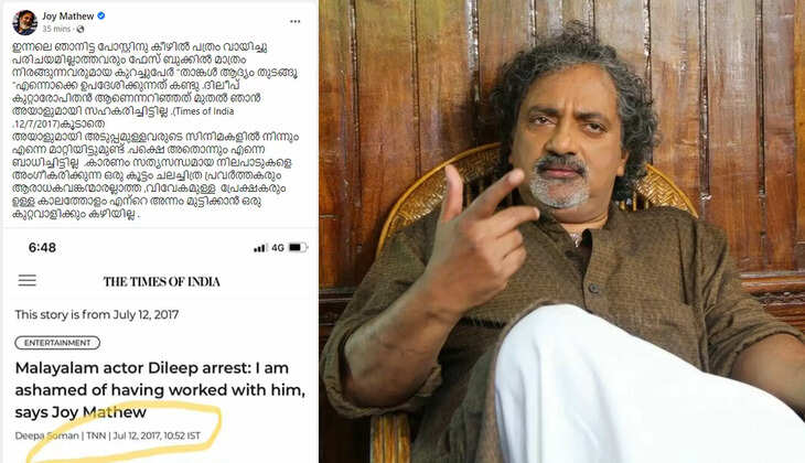 ഇതിന് മറുപടിയായി 2017 ജൂലൈ 12ന് ടൈംസ് ഓഫ് ഇന്ത്യയില് പ്രസിദ്ധീകരിച്ച വാര്ത്തയുടെ സ്ക്രീന്ഷോട്ട് പങ്കുവെച്ചുകൊണ്ടാണ് ജോയ് മാത്യു പ്രതികരിച്ചിരിക്കുന്നത്. ദിലീപിനോടൊപ്പം പ്രവര്ത്തിച്ചതില് ലജ്ജ തോന്നുന്നുവെന്ന ജോയ് മാത്യുവിന്റെ പ്രസ്താവനയാണ് വാര്ത്ത.