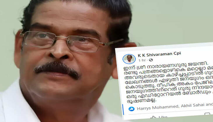 സിപിഐ മുഖപത്രം ജനയുഗത്തെ രൂക്ഷമായി വിമര്ശിച്ച് പാര്ട്ടി ഇടുക്കി ജില്ലാ സെക്രട്ടറിയും സംസ്ഥാന കൗണ്സില് അംഗവുമായ കെ.കെ.ശിവരാമന്. ഫെയിസ്ബുക്ക് കുറിപ്പിലാണ് വിമര്ശനം. ശ്രീ നാരായണഗുരു ജയന്തി ദിനത്തില് ഒന്നാം പേജില് അദ്ദേഹത്തിന്റെ ഒരു ചെറിയ ചിത്രം മാത്രമാണ് ജനയുഗം നല്കിയത്. ജനയുഗം നടത്തിയത് ഗുരുനിന്ദയാണെന്ന് ശിവരാമന് കുറിപ്പില് പറയുന്നു.
