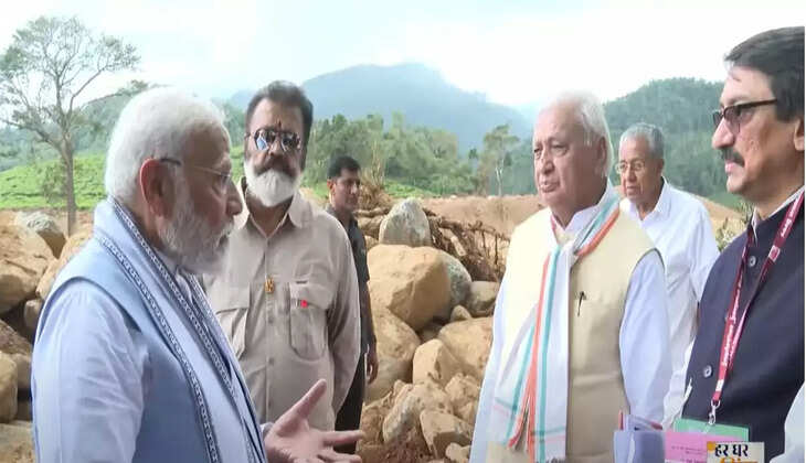ഉരുൾപൊട്ടൽ ദുരന്തമുണ്ടായ വയനാട്ടിലെ മുണ്ടക്കൈ-ചൂരൽമല മേഖലയിൽ നേരിട്ടെത്തി പ്രധാനമന്ത്രി നരേന്ദ്രമോദി. മുഖ്യമന്ത്രി പിണറായി വിജയൻ, കേന്ദ്ര സഹമന്ത്രി സുരേഷ് ഗോപി, ഗവർണർ ആരിഫ് മുഹമ്മദ് ഖാൻ എന്നവർ പ്രധാനമന്ത്രിക്കൊപ്പമുണ്ടായിരുന്നു. ദുരന്തഭൂമി സന്ദർശിച്ച അദ്ദേഹത്തിന് ഒപ്പമുണ്ടായിരുന്ന ഉദ്യോഗസ്ഥർ കാര്യങ്ങൾ വിശദീകരിച്ചു. സൈന്യം ചൂരൽമലയിൽ നിർമ്മിച്ച ബെയ്ലി പാലത്തിലൂടെ നടന്ന് നരേന്ദ്ര മോദി മറുകരയിലെത്തി. കൽപറ്റയിൽ നിന്ന് റോഡ് മാർഗമാണ് അദ്ദേഹം ചൂരൽമലയിലെത്തിയത്. വെള്ളാർമല സ്കൂളിന്റെ പുറകുവശത്തെ തകർന്ന റോഡിലൂടെയാണ് അദ്ദേഹം നടന്നത്.