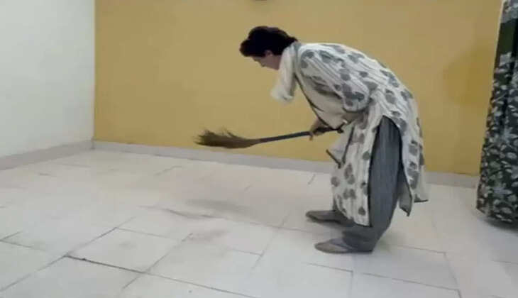 തടവിലിരിക്കുന്ന മുറി വൃത്തിയാക്കി പ്രിയങ്ക ഗാന്ധി; വീഡിയോ വൈറല്