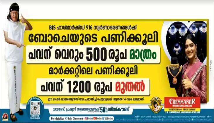 സ്വര്ണത്തിന് വില ഉയരുന്ന സാഹചര്യത്തില് ഉപഭോക്താക്കള്ക്ക് ആശ്വാസമായ് ബോചെയുടെ ഓഫര്. ബോബി ചെമ്മണൂര് ഇന്റര്നാഷണല് ജ്വല്ലേഴ്സില് ബിഐഎസ് ഹാള്മാര്ക്ക്ഡ് 916 സ്വര്ണാഭരണങ്ങള്ക്ക് പവന് 500 രൂപ മാത്രമാണ് പണിക്കൂലി, അതേ സമയം മാര്ക്കറ്റില് പവന് 1200 രൂപ മുതലാണ് പണിക്കൂലി ഈടാക്കുന്നത്. കൂടാതെ ഡയമണ്ട്, പ്രഷ്യസ് ആഭരണങ്ങള്ക്ക് പണിക്കൂലിയില് 50% വരെ ഡിസ്കൗണ്ടും ലഭിക്കും. വാലന്റൈന്സ് ഡേ പ്രമാണിച്ച് ഫെബ്രുവരി 14 വരെ ഓഫറുകള് ലഭ്യമാണ്.