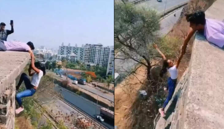ബഹുനില കെട്ടിടത്തിനു മുകളിൽ അപകടകരമായി തൂങ്ങിക്കിടന്ന് റീൽസെടുത്ത യുവതിയെയും സുഹൃത്തിനും പൊലീസ് അറസ്റ്റ് ചെയ്തു. പുണെ സ്വദേശികളായ മിഹിർ ഗാന്ധി (27), മിനാക്ഷി സലുൻഖെ (23) എന്നിവരെയാണ് ഭാരതി വിദ്യാപീഠ് പൊലീസ് അറസ്റ്റ് ചെയ്തത്. ഇവരുടെ വിഡിയോ ഫോണിൽ പകർത്തിയ മൂന്നാമൻ ഒളിവിലാണ്.
