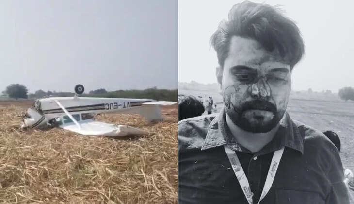 കര്ണാടകയിലെ വിജയപുരയില് തകര്ന്നുവീണ സ്വകാര്യ ചെറുവിമാനം ( വലത്), പരിക്കേറ്റ യാത്രക്കാരന് ( ഇടത് ) | ANI Video grab Image