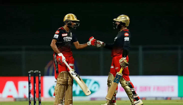 170 എന്ന വിജയലക്ഷ്യം പിൻതുടർന്ന ബാംഗ്ലൂരിന് ഓപ്പണർമാർ മികച്ച തുടക്കം നൽകി. അൻജു റാവത്ത് 26ഉം ഫാഫ് 29ഉം നേടി. എന്നാൽ തുടരെ നാല് വിക്കറ്റുകൾ വീണത് ബാംഗ്ലൂരിനെ പ്രതിരോധത്തിലാക്കി. 8 റൺസ് നേടി കോഹ്ലിയും റണ്ണെടുക്കാതെ ഡേവിഡ് വില്ലിയും മടങ്ങി. അഞ്ച് റൺസെടുത്ത റുതർഫോഡ് പുറത്തായ ശേഷമാണ് കാർത്തിക്ക് ക്രീസിലെത്തുന്നത്. അശ്വിന് എറിഞ്ഞ 14മത്തെ ഓവറിൽ 21 റൺസാണ് കാർത്തിക്കും ഷഹബാസും ചേർന്ന് നേടിയത്. ഇത് കളിയിൽ നിർണ്ണായകമായി. പിന്നീട് ഇരുവരും ചേർന്ന് അനായാസം ടീമിനെ വിജയത്തിനടുത്ത് എത്തിച്ചു. സ്കോർ 154ലൽ നിൽക്കെ ഷഹബാസ് പുറത്തായെങ്കിലും പിന്നാല എത്തിയ ഹർഷ് പട്ടേലിനെ കൂട്ടുപിടിച്ച് കാർത്തിക്ക് ടീമിനെ വിജയത്തിലെത്തിച്ചു.